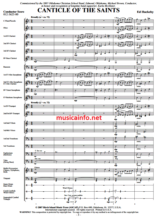 Canticle of the Saints - cliquer ici Canticle of the Saints (orchestre d'harmonie), partition et pièces