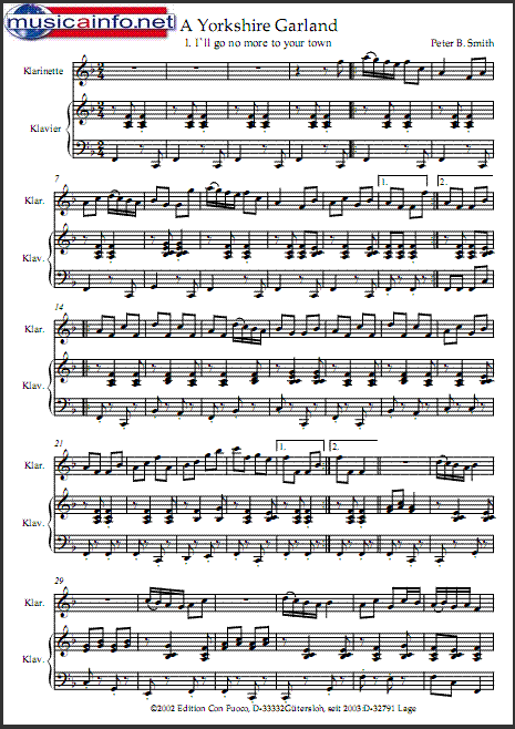 Informations complémentaires/contenu Drei Volkslieder aus Yorkshire in einem mittelschweren Arrangement für Klarinette und Klavier.