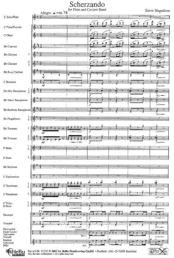 Scherzando - for Flute and Concert Band - cliquer ici Scherzando - for Flute and Concert Band (orchestre d'harmonie; flûte), partition et pièces