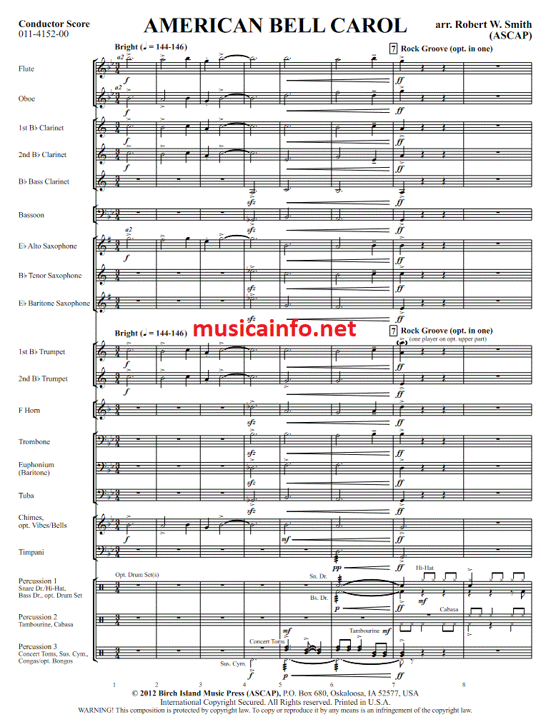 Robert W. Smith's extremely popular series based on the Ukrainian Bell Carol continues with this setting in an American style. Beginning with a Sousa quote, our 'American Bell Carol' continues with a driving rock groove. Mr. Smith has cleverly woven the melody to 'America The Beautiful' into the second statement providing a very unique teaching opportunity. Written for middle school to community bands, this will be a favorite for years to come!