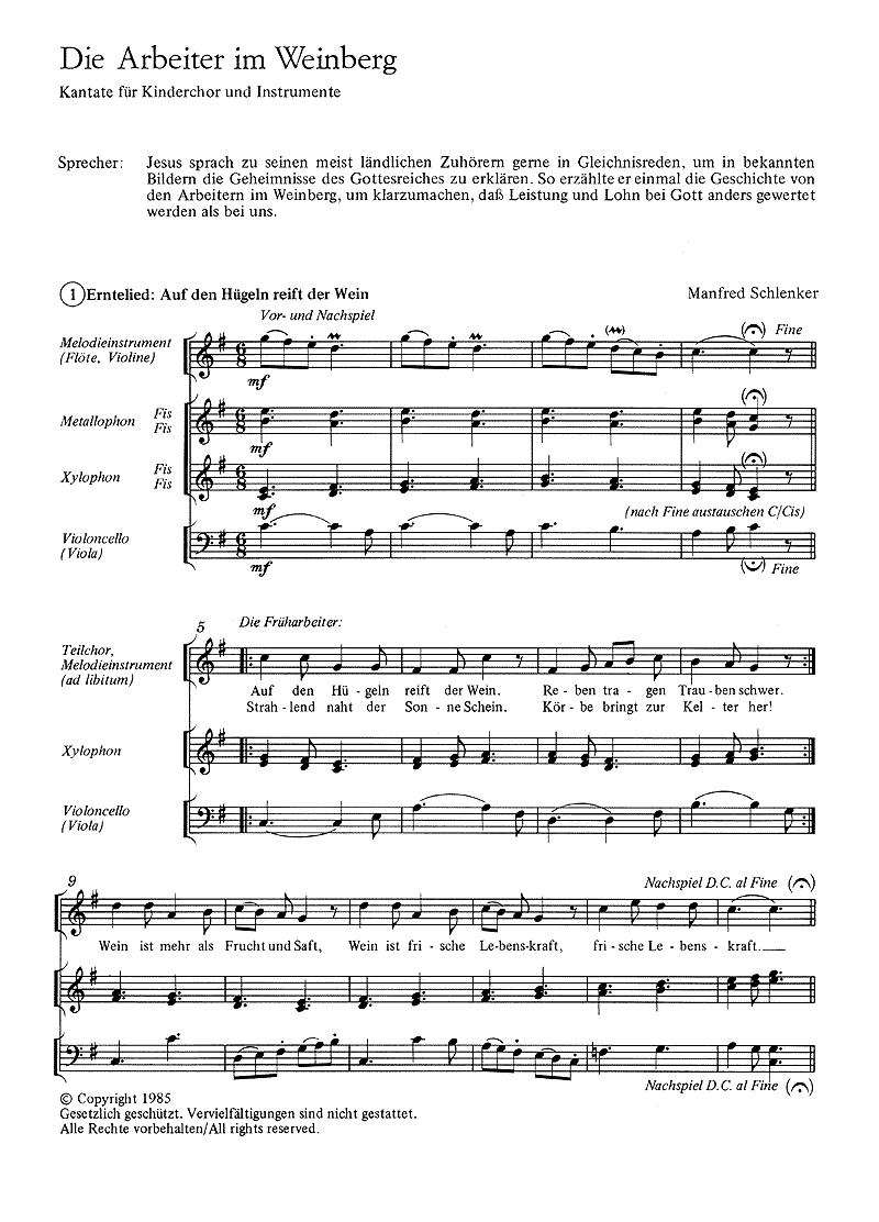 Die Arbeiter im Weinberg. Szenische Kantate - Extrait du conducteur