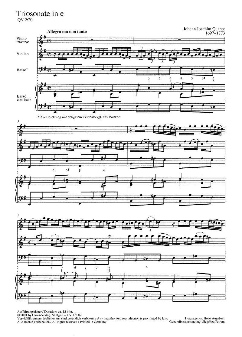Instrumentation Flt (flûte); Vln (violon); BC (Basse chiffrée)