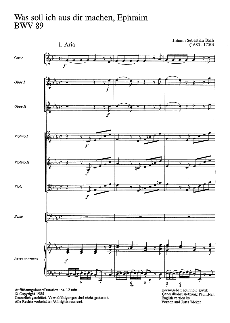 Was soll ich aus dir machen, Ephraim - cliquer ici Was soll ich aus dir machen, Ephraim (VoSoSAB; choeur SATB; Cor; 2 hautbois; en option; Cor; ]; 2 violons; alto; Basse chiffrée), partition d'étude