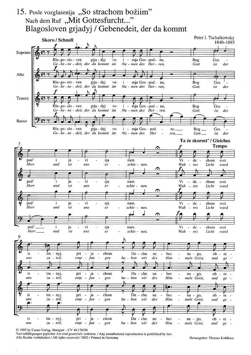 Blagosloven grjadyj (Gebenedeit, der da kommt) - Extrait du conducteur