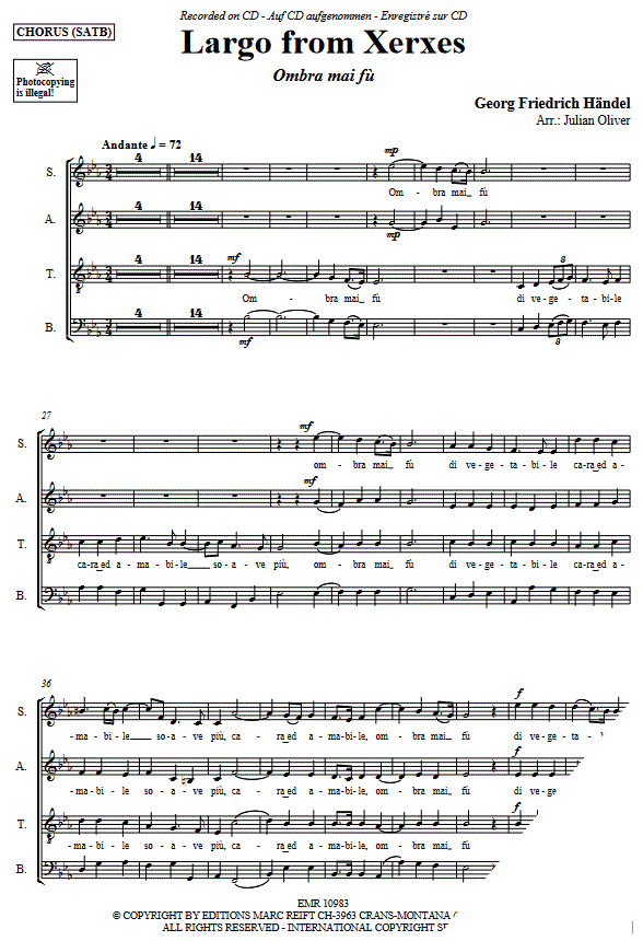 Largo from Xerxes - cliquer ici Largo from Xerxes (orchestre d'harmonie; ou; orchestre de fanfare; choeur mixte), partition et pièces