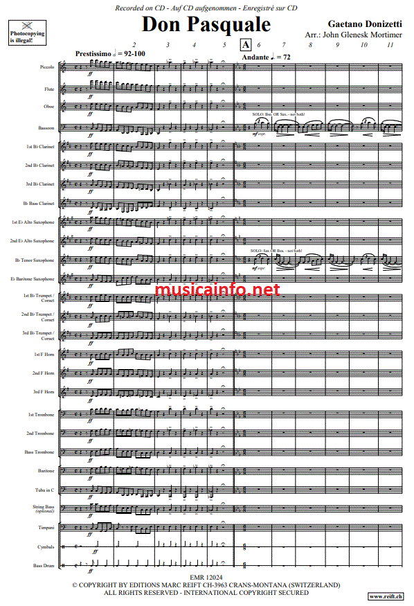 Don Pasquale - cliquer ici Don Pasquale (orchestre d'harmonie), partition et pièces