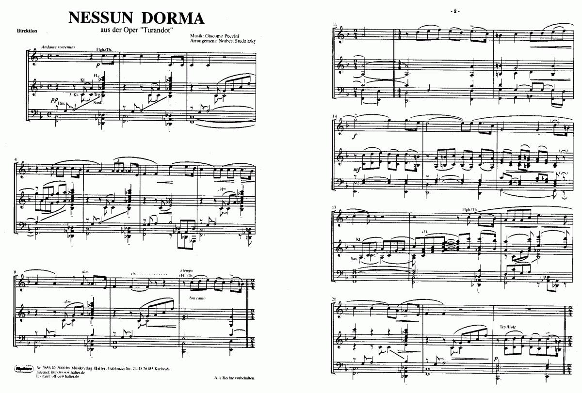 Nessun Dorma (aus 'Turandot') - cliquer ici Nessun Dorma (aus 'Turandot') (orchestre d'harmonie), Score condensé et parties