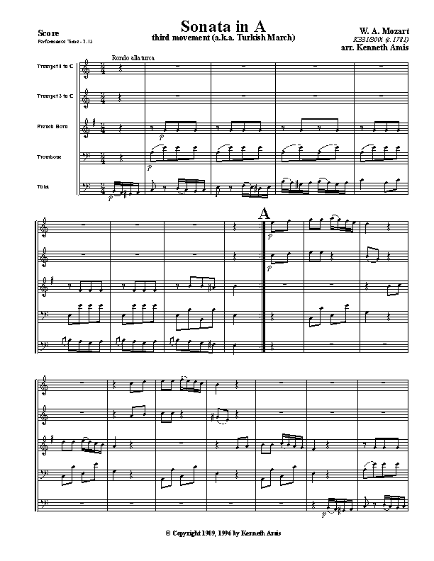 Sonata in A (3rd Movement - Rondo alla turca) (5 Blechbläser)