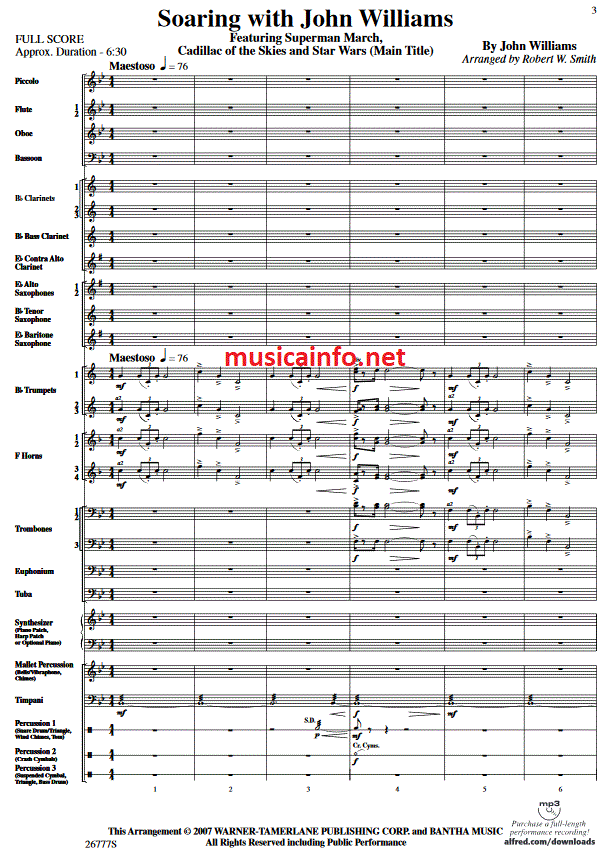 Informations complémentaires/contenu Le seul nom synonyme de musique de film exceptionnelle est John Williams, dont les thèmes embrassent chaque personnage pendant que les mélodies s'envolent. Robert W. Smith n'en a sélectionné que trois qui représentent clairement la présence de Williams dans "Soaring With John Williams".