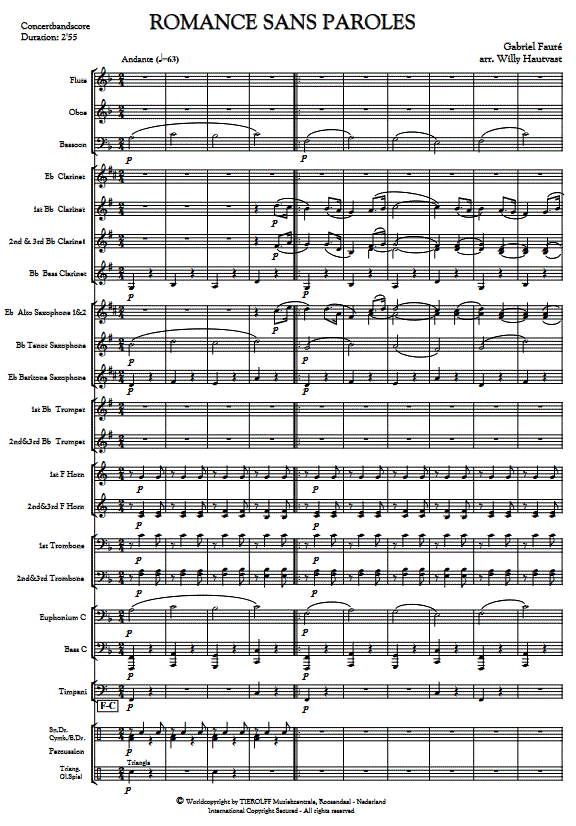 Romance Sans Paroles - cliquer ici Romance Sans Paroles (orchestre d'harmonie), partition et pièces