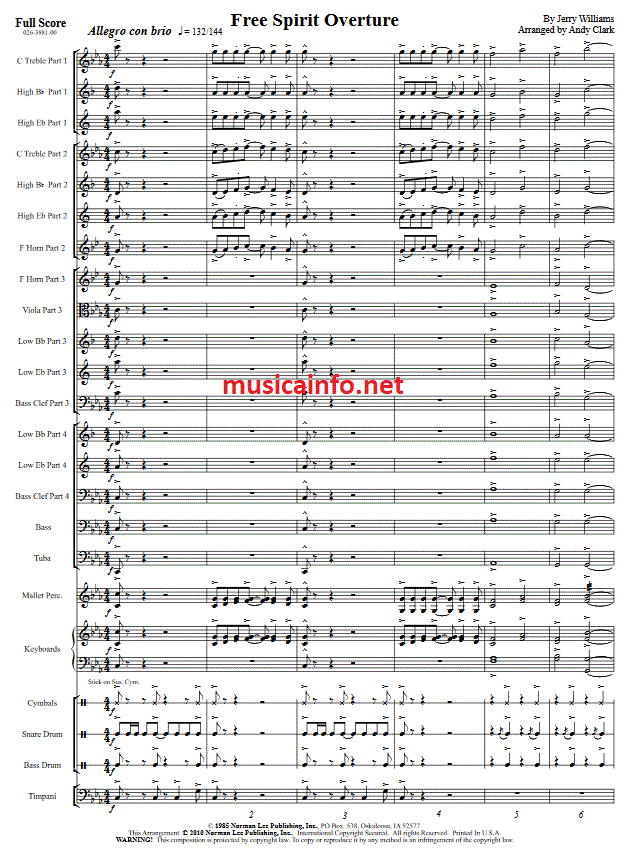 Free Spirit Overture - cliquer ici Free Spirit Overture (orchestre d'harmonie; instrumentation variable), partition