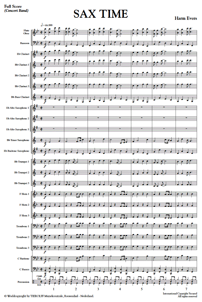 Sax Time - cliquer ici Sax Time (orchestre d'harmonie; saxophone), partition et pièces