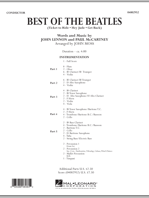 Best of the Beatles - cliquer ici Best of the Beatles (instrumentation variable), partition et pièces