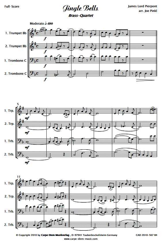Instrumentation / informations 2Trp (2 trompettes en si bémol); 2Trb (2 trombones)