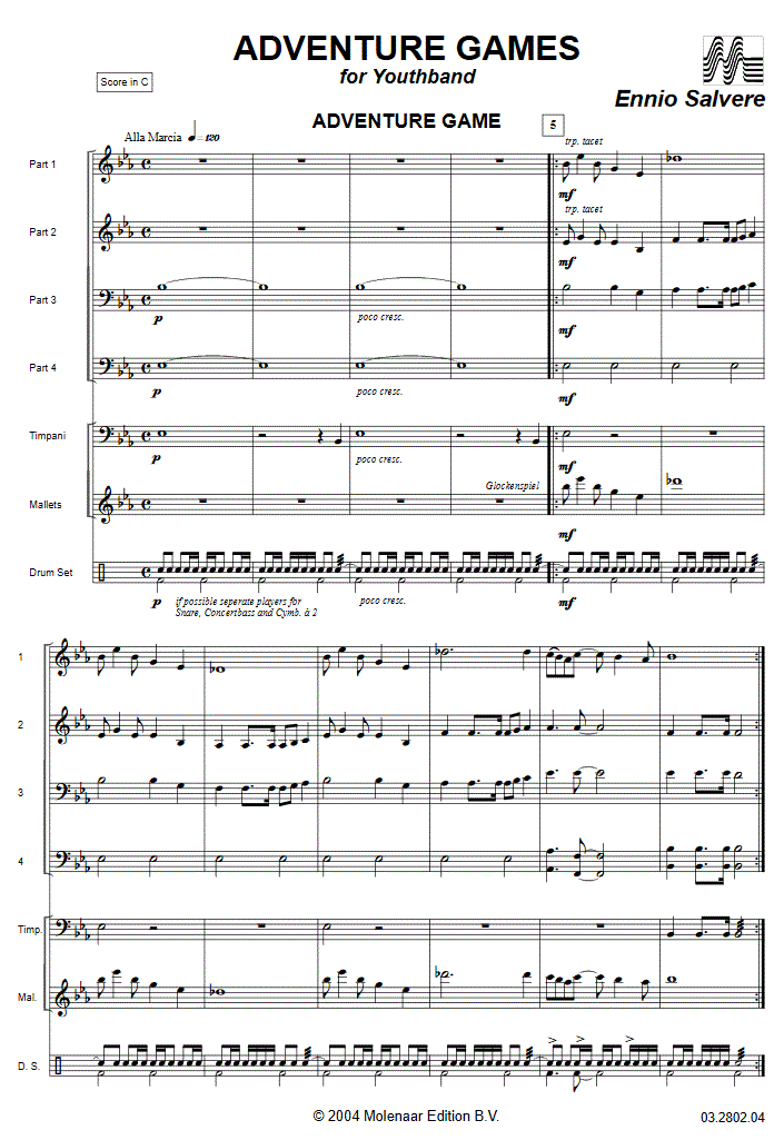 Adventure Game (Part I from 'Adventure Games') - cliquer ici Adventure Game (Part I from 'Adventure Games') (orchestre de fanfare; orchestre des jeunes; instrumentation flexible pour 4 voix; instrument de percussion), partition et pièces