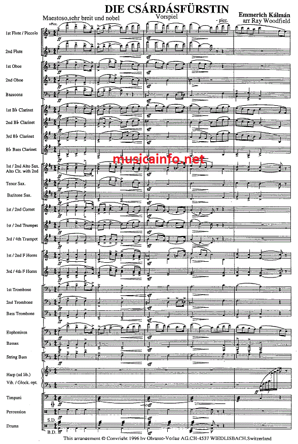 Prelude to 'Die Csardasfürstin' - cliquer ici Prelude to 'Die Csardasfürstin' (orchestre d'harmonie), partition et pièces