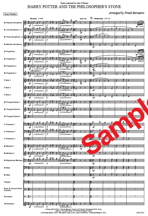 Harry Potter and the Philosopher's Stone - cliquer ici Harry Potter and the Philosopher's Stone (orchestre de fanfare), partition et pièces