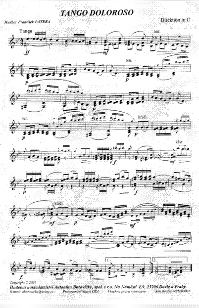 Tango Doloroso (petite orchestre à vent), Score condensé et parties