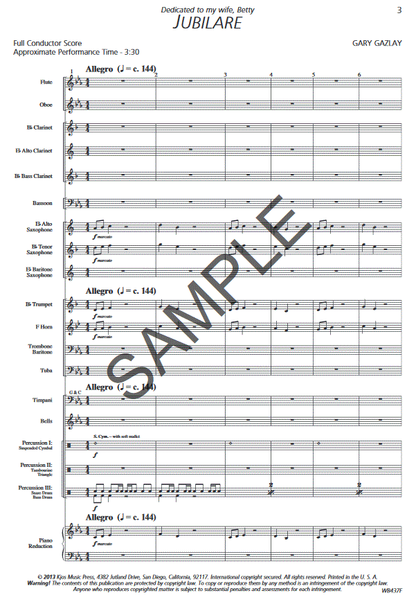 Informations complémentaires/contenu Dans la tonalité facile du do mineur, cette sélection énergique du compositeur à succès Gary Gazlay a quelque chose pour tout le monde. Avec un thème principal vigoureux et animé, une section centrale sereine et contrastée, et un final radieux avec un troisième thème, "Jubilare" deviendra certainement l'un des favoris de votre groupe.