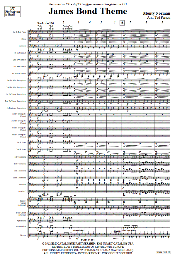 James Bond Theme - cliquer ici James Bond Theme (orchestre d'harmonie; ou; orchestre de fanfare), partition