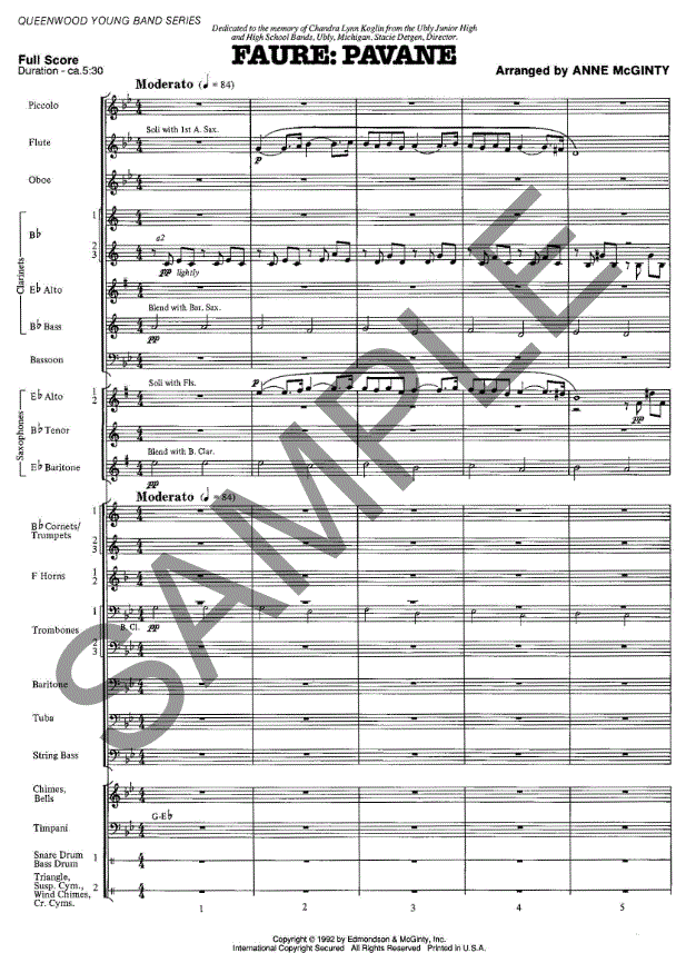 Pavane - cliquer ici Pavane (orchestre d'harmonie), partition