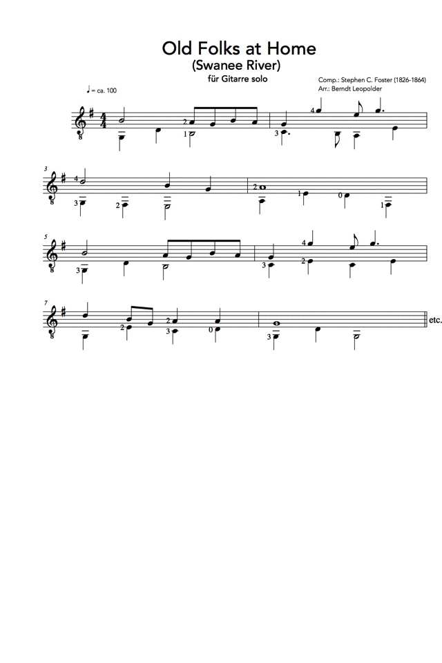 Informations complémentaires/contenu "Old Folks At Home" (Swanee River) ist wohl einer der bekanntesten Lieder von St. C. Foster, der bis heute als "Father Of American Music" gilt. Folkpicking