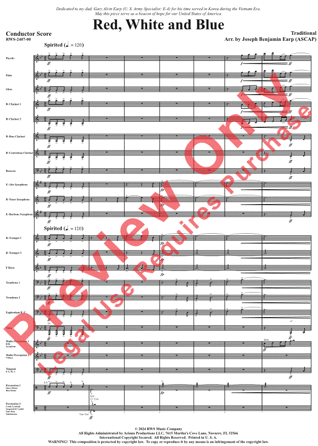 Red, White and Blue - cliquer ici Red, White and Blue (orchestre d'harmonie), partition et pièces