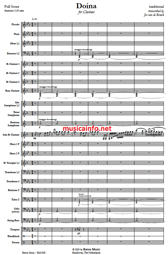 Doina - cliquer ici Doina (orchestre d'harmonie; clarinette en si bémol), partition