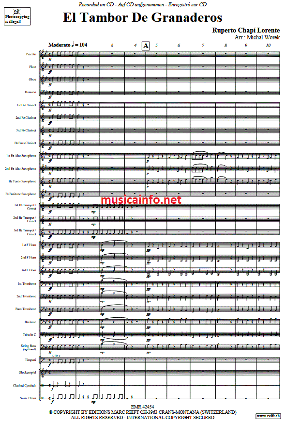 El Tambor de Granaderos - cliquer ici El Tambor de Granaderos (orchestre d'harmonie; ou; orchestre de fanfare), partition et pièces