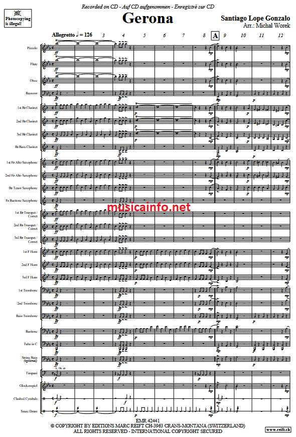 Gerona - cliquer ici Gerona (orchestre d'harmonie; ou; orchestre de fanfare), partition et pièces