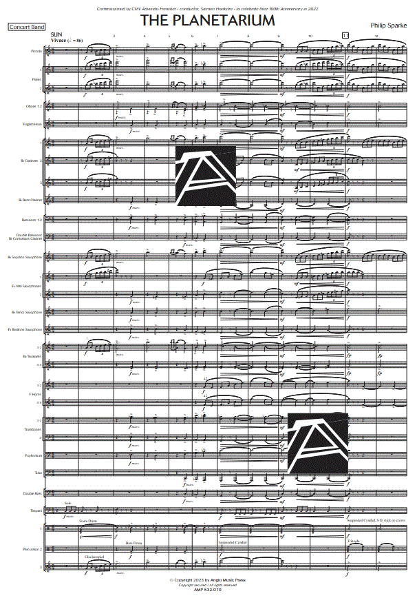 Informations complémentaires/contenu « Le Planétarium » a été commandé par l'association musicale CMV Advendo Franeker pour célébrer son 100e anniversaire en 2022. L'œuvre s'inspire du célèbre Planétarium royal Eise Eisinga de Franeker (Pays-Bas), ville natale de l'orchestre. Dans cette œuvre continue en sept mouvements, le compositeur représente le Soleil ainsi que les planètes Mercure, Vénus, la Terre, Mars, Jupiter et Saturne. Une courte citation du Psaume 150 est également incluse. Une œuvre qui transcende l'ordinaire !