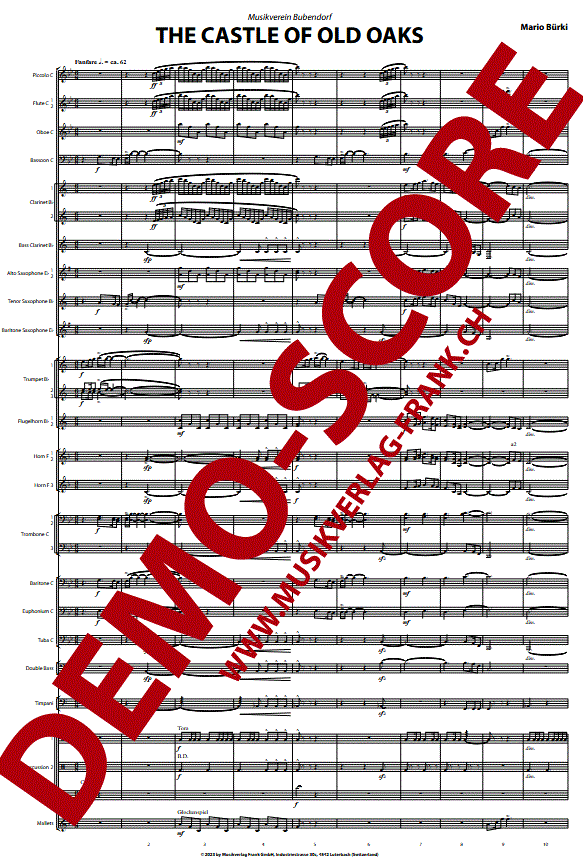 Informations complémentaires/contenu Une mélodie baroque festive ouvre la pièce, évoquant la splendeur musicale du majestueux château de Wildenstein. La section suivante déploie une séquence lente et mystérieuse, inspirée par les chênes centenaires qui entourent le château. Un interlude, reprenant le chant traditionnel de Bubendorf, précède progressivement une section au rythme saisissant. Cette section illustre musicalement le contexte politique de la prairie de Rütli, dans le canton de Bâle-Campagne, et dépeint avec force les débats et les conflits qui s'y sont déroulés.