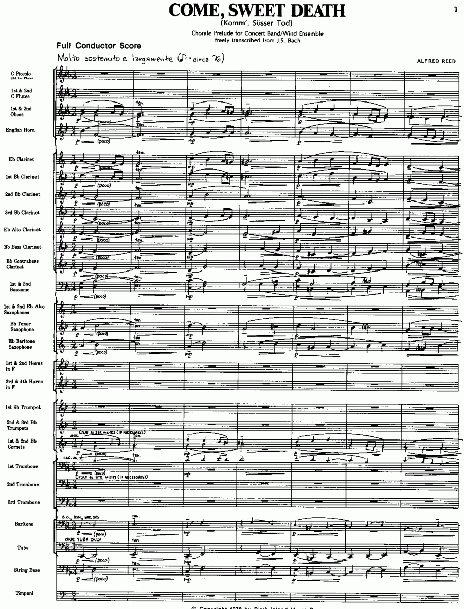 Come, Sweet Death - cliquer ici Come, Sweet Death (orchestre d'harmonie), particella