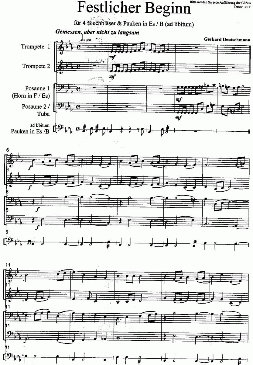 Instrumentation 2Trp (2 trompettes en si bémol); 2Trb (2 trombones); (Tmp ad lib.)
