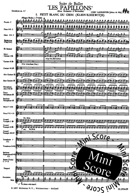 Informations complémentaires/contenu La Suite Ballet Les Papillons de la pianiste / compositrice néerlandaise Coby Lankaster a été composée à l'origine pour piano. Johan de Meij s'est intéressé à cette pièce et a décidé de la marquer pour le groupe symphonique. Les cinq mouvements ont tous reçu des noms suggestifs de membres colorés de la famille buttefly, offrant ainsi le cadre idéal pour cette musique subtile et délicate.