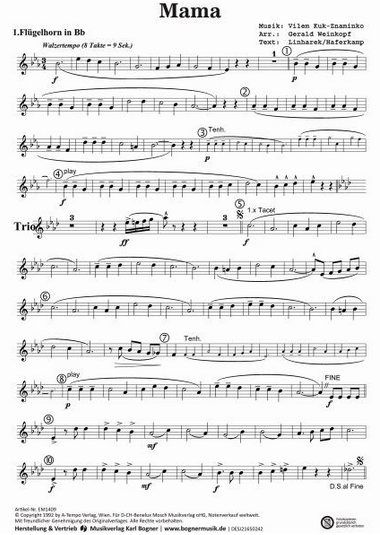 Partitur, Flöte in C, Oboe in C, Klarinette in Eb, 1.Klarinette in Bb, 2.Klarinette in Bb, 3.Klarinette in Bb, 1.Alt-Saxophon in Eb, 2.Alt-Saxophon in Eb, 1.Tenor-Saxophon in Bb, 2.Tenor-Saxophon in Bb, Bariton-Saxophon in Eb, Fagott in C, 1.Flügelhorn in Bb, 2.Flügelhorn in Bb, 1.Trompete in Bb, 2.Trompete in Bb, 3.Trompete in Bb, 1.Horn in Eb, 1.Horn in F, 2.Horn in Eb, 2.Horn in F, 3.Horn in Eb, 3.Horn in F, 4.Horn in Eb, 4.Horn in F, 1.Tenorhorn in Bb, 2.Tenorhorn in Bb, 3.Tenorhorn in Bb, Bariton in C, Bariton in Bb, 1.Posaune in C, 1.Posaune in Bb, 2.Posaune in C, 2.Posaune in Bb, 3.Posaune in C,3.Posaune in Bb,1.Baß in C, Baß in Eb, 2.Baß in C, Baß in Bb,Schlagzeug, Gesang |