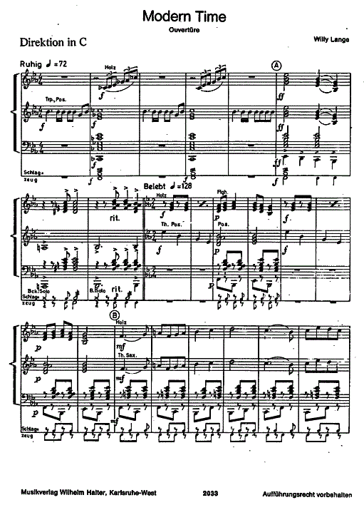 Modern Time - cliquer ici Modern Time (orchestre d'harmonie), Score condensé et parties