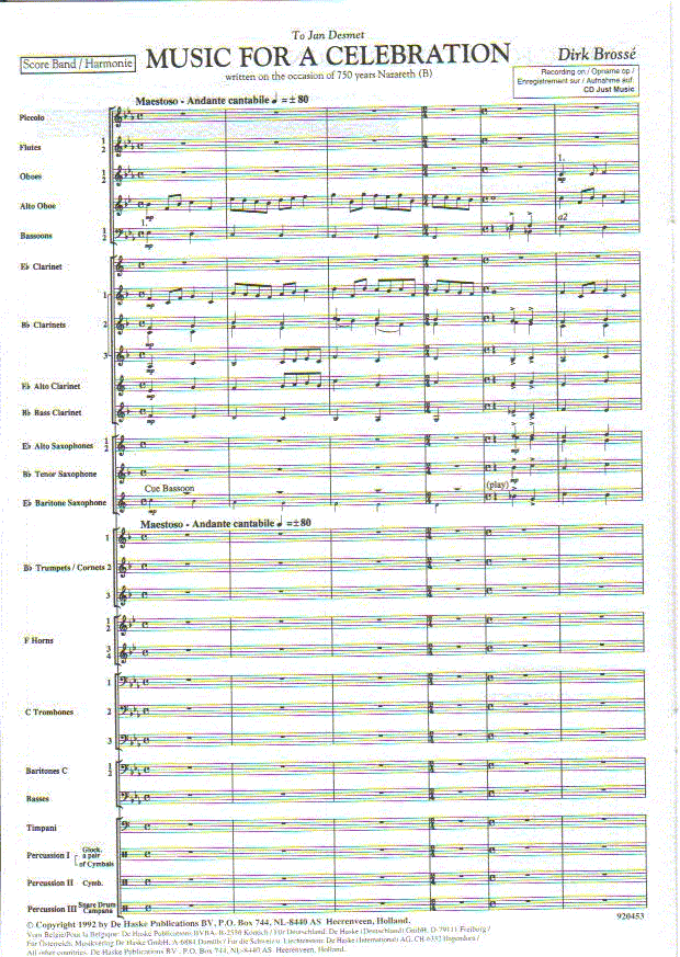 Music for a Celebration - cliquer ici Music for a Celebration (orchestre d'harmonie), partition