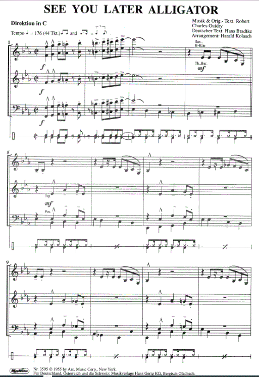 See You Later, Alligator - cliquer ici See You Later, Alligator (orchestre d'harmonie), Score condensé et parties