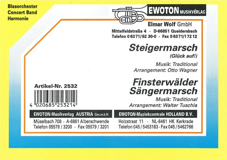 Steigermarsch (Glück auf der Steiger kommt) - cliquer ici Steigermarsch (Glück auf der Steiger kommt) (orchestre d'harmonie), Score condensé et parties