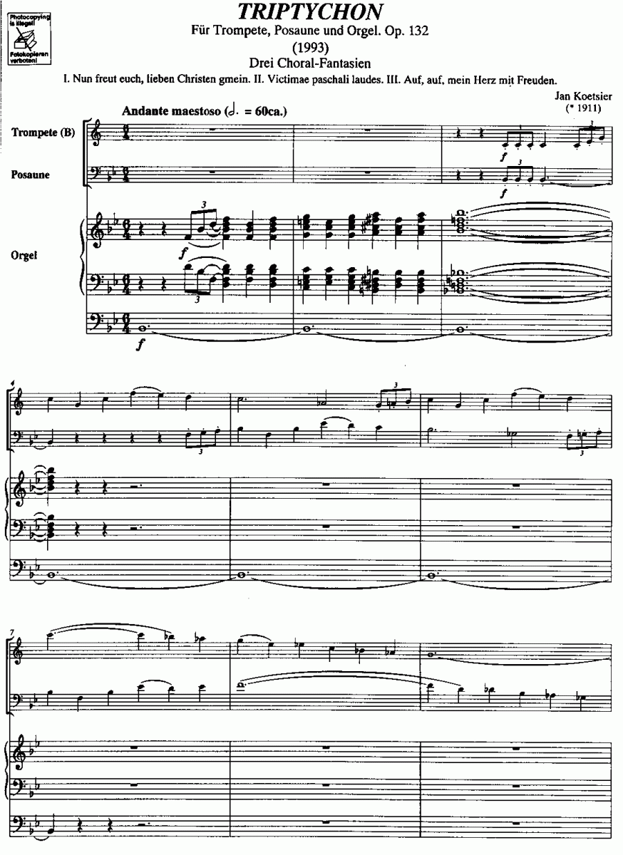 Instrumentation / informations Trp (trompette en si bémol); Trb (trombone); Org (orgue)
