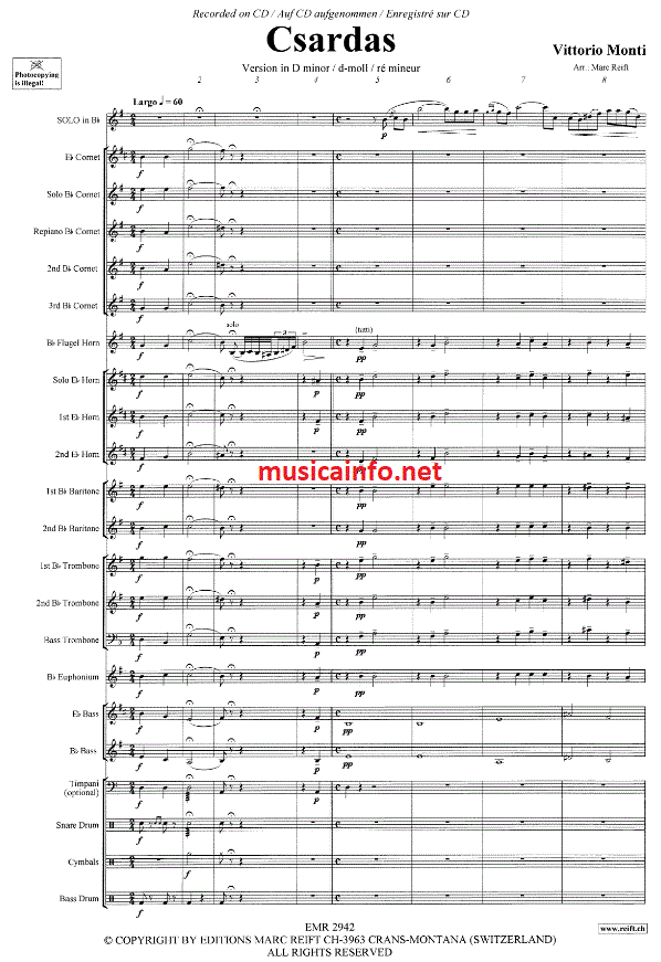 Csardas - cliquer ici Csardas (brass band; Solo), partition et pièces